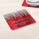 Silver Glitter Drips Red Foil 50th Birthday Square Paper Coaster