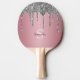 Silver Glitter Drips Rose Gold Pink Monogram Name Ping Pong Paddle