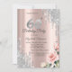 A modern, chic, and glamourous with silver glitter drips, roses on a rose gold background.