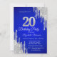 Silver Glitter Drips Royal Blue 20th Birthday Invitation