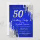 Silver Glitter Drips Royal Blue 50th Birthday Invitation