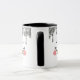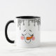 This mug has a happy snowman face on two sides. The top is bordered with sparkly silver glitter drips. Your name or other text is located between the snowman faces. Cute for Christmas and all through the winter.