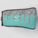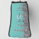 Silver Glitter Drips Sparkle Monogram Name Teal Golf Head Cover