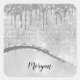 Silver Glitter Drips & Sparkle, Name & Monogram Square Sticker