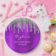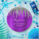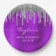 Silver Glitter Drips Violet Foil 40th Birthday Paper Plate