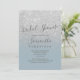 Silver glitter dusty blue script bridal shower invitation