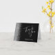 This elegant modern wedding thank you card features a border of silver faux glitter on a black background. The customisable text combines the words "Thank You" in silver grey handwriting script and the names of the bride and groom in italic font.
