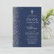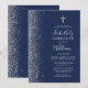 Silver Glitter Edge Navy Blue First Holy Communion Invitation