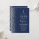 Silver Glitter Edge Navy Blue First Holy Communion Invitation