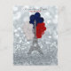 Silver Glitter Eiffel Tower Red Blue Save the Date Announcement Postcard