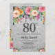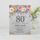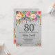 Silver Glitter Floral 80th Birthday Invitation