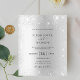 A modern, minimalist and formal wedding invitation. Faux silver looking background decorated with faux glitter. Personalise and add your names and details. Black coloured letters.