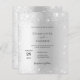 A modern, minimalist and formal wedding invitation. Faux silver looking background decorated with faux glitter. Personalise and add your names and details. Black coloured letters.