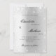 A modern, elegant and minimalist formal wedding invitation. Faux silver looking background decorated with faux glitter. Personalise and add your names and details. Black coloured letters. The first names are written with a modern hand lettered style script.