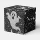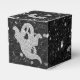 Adorable Small Square Favour Boxes for Halloween, Featuring Silver Glitter Ghost Black Faux Glitter Design