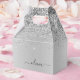 Silver Faux Foil Metallic Sparkle Glitter Brushed Metal Monogram Name Favour Box. This makes the perfect sweet 16 birthday, wedding, bridal shower, anniversary, baby shower or bachelorette party gift for someone that loves glam luxury and chic styles.