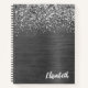 Silver Glitter Grey Brushed Metal Monogram Notebook