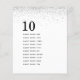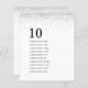 A size 4.5 x 5.6” semi-gloss 110lbs weight, which is of similar thickness to a postcard, with ONE per sheet. Silver Glitter Guest Names Table Number. Simple contemporary style with the table number larger in stylish lowercase and your guest names for the table beneath and lots of of white space with a border of silver faux glitter at the top. Easily personalise the text to your own details. The same design is on the back