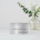 Silver Glitter Hair Makeup Salon Metallic Business Card with girly glam elegant and modern script typography.
