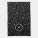 Cute silver grey glitter valentines hearts pattern over customisable black background. Custom monogram with black and silver glitter circle.