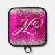 Silver Glitter Hot Pink Foil Fancy Monogram Pot Holder