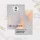 This earring display card features a pinstripe black border, a place to add your logo, and matching simple but elegant black typography on a faux printed silver glitter with pink, peach, blue, and purple iridescent holographic ombre gradient glamorous and chic background. On the back, it includes contact information that can be changed completely or personalized to your details. It's a professional, elegant, and stylish way to display your product with pride. (earring holes are printed markers only, puncturing must be completed by the customer)