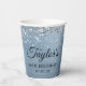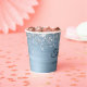Create your own silver glitter and light blue foil 40th birthday party paper cups for your guests.