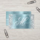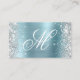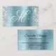 Silver Glitter Light Blue Foil Fancy Monogrammed Business Card
