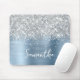 Silver Glitter Light Blue Glam Name Mouse Pad