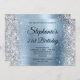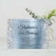 Silver Glitter Light Blue Monogram 21st Birthday Invitation