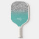Silver Glitter Light Teal Ombre Modern Script Pickleball Paddle