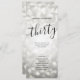 Elegant Glam Silver Glitter Lights 30th Birthday Script template featuring party program text, glitter lights and modern typography script.