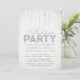 This lovely Bachelorette Party invitation design by The Spotted Olive™ features a pretty soft silver grey background with an image of sparkly gems streaming from the top and the words "Bachelorette Party" stylishly typeset featuring the word "Party" filled with an image of silver glitter. PLEASE NOTE: THIS DESIGN ONLY FEATURES A PRINTED IMAGE OF GLITTER; THERE IS NO PHYSICAL GLITTER USED OR INCLUDED; THERE ARE NO EMBELLISHMENTS. THIS IS A FLAT PRINTED INVITATION. Copyright 2013-Present | The Spotted Olive™ | All Rights Reserved