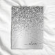 Silver Glitter Metal Monogram Glam Name Fleece Blanket