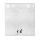 A faux silver metallic looking background. Decorated with faux glitter dust. Personalise and add your name and monogram initials. Black coloured letters.