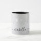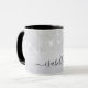 A faux silver metallic looking background, decorated with faux glitter dust. Personalise and add your name written with a trendy hand lettered style script with swashes.