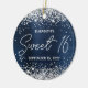 Silver Glitter Navy Blue Fancy Sweet 16 Photo Ceramic Ornament