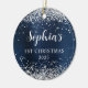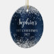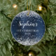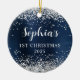 Silver Glitter Navy Blue Foil 1st Christmas Photo Ceramic Ornament