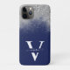 Silver Glitter Navy Blue Monogram Elegant Custom iPhone 11 Pro Case. A fun and trendy design with sparkling glitter effect with a split monogram you can customise! **NOTE - The gold dust/glitter is graphic simulated and not real gold dust. No gold dust/glitter is used in making this.