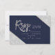 Silver glitter navy blue script wedding Rsvp