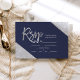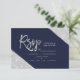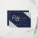 Silver glitter navy blue typography wedding Rsvp, Silver typography on customizable navy blue silver glitter color block and faux silver geometric stripes chic wedding rsvp , perfect for elegant wedding,