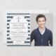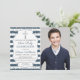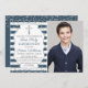Silver Glitter Navy Blue Stripes Photo Boy First Communion Invitation