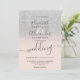 Grey silver glitter ombre blush script chic wedding with an elegant silver sparkles glitter ombre gradient on an editable [pastel blush pink with an elegant and modern script calligraphy.
