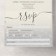 Chic silver glitter ombre sparkles on ivory all in one calligraphy wedding invitation with rsvp, accommodations, details, and more info. With a modern and trendy script with 4 food choices.