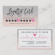 Elegant silver glitter sparkles pastel blush pink script makeup hair pink heart loyalty card with modern hand lettering style brush typography on white , a simple, professional and minimalist card. offer 10 treatments and discount to your customers.