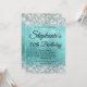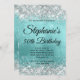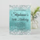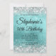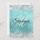 Silver Glitter Pale Aqua Blue Foil Fancy Monogram Invitation