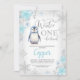 Silver Glitter Penguin Winter Onederland Birthday Invitation