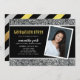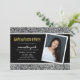 Silver Glitter Photo Graduation Party Invitation features the words "Graduation Party" in a fun sans serif font in faux gold foil with a silver glitter top and bottom and a black centre background. Invitation has a grey, black and faux gold foil stripes pattern back side.