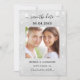 A modern wedding Save the Date photo card. A faux silver metallic looking background. Decorated with faux glitter dust. Personalise and add your photo, wedding details.