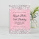 Silver Glitter Pink Fancy Monogram 50th Birthday Invitation